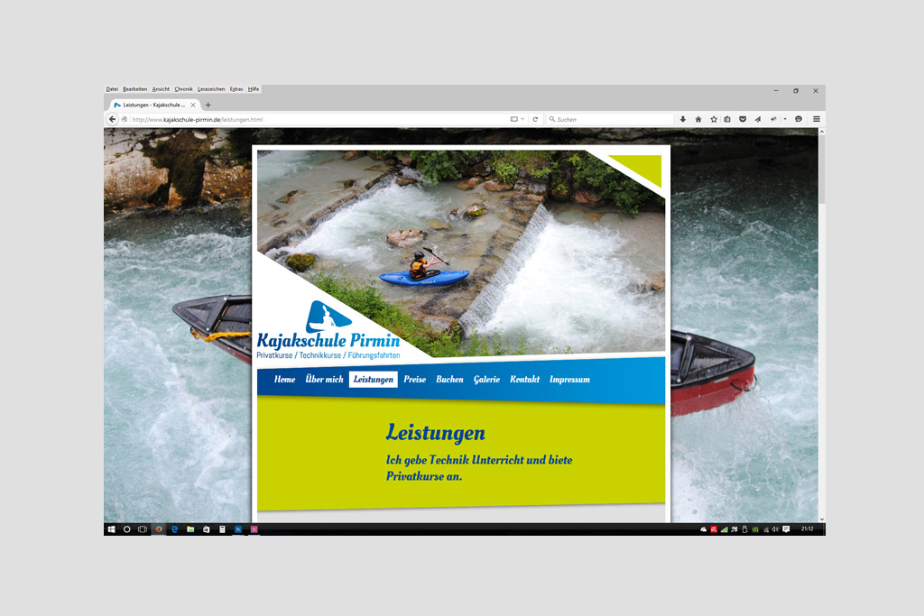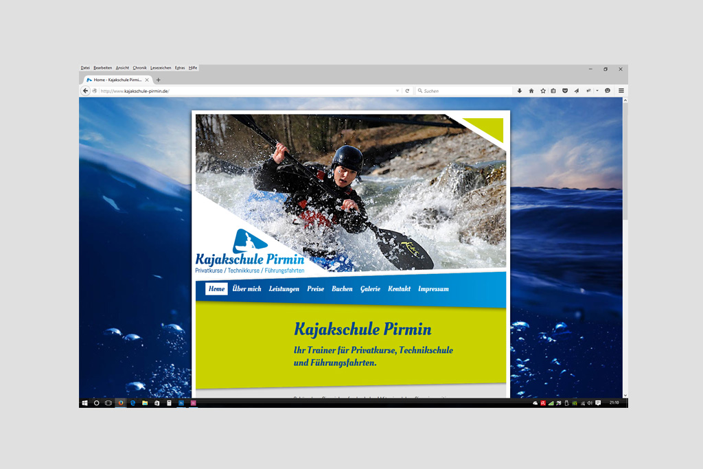 Pimin Dumpert biete seinen Kunden private Kajak-Trainingsstunden und Führungsfahrten an. Sein überdurchschnittliches Know-how und seine jahrelange Erfahrung machen ihn zu einem gefragten Mann in der Kajakszene im Allgäu. Ich habe für ihn sein Logo und seine Homepage entworfen und umgesetzt.