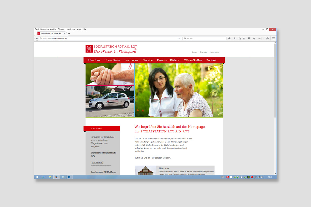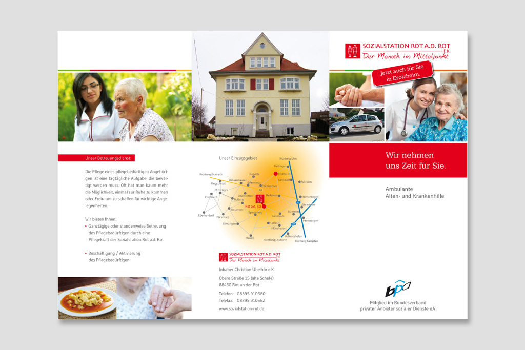 Die Sozialstation Rot an der Rot hat mich beauftragt ihr Logo zu überarbeiten, der Zusatzes e.K. (eingetragener Kaufmann) musste unbedingt mit aufgenommen werden. Zusätzlich wurden Gestaltungsrichtlinien für das Logo definiert (Abstände, Farben, Schrift, usw.)
